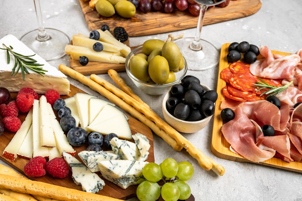 Une planche de charcuterie ne serait pas complète sans quelques accompagnements soigneusement choisis. Les olives, qu’elles soient vertes ou noires, sont toujours un succès auprès des convives. Pour aller plus loin dans l’originalité, pourquoi ne pas ajouter quelques noix ou des fruits secs comme les amandes grillées ? Ces éléments apportent du croquant tout en équilibrant les saveurs riches des charcuteries.